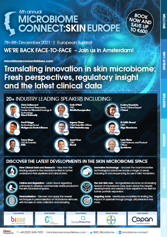 We're thrilled to share the programme for the 6th Annual Microbiome Connect: Skin Europe with you and couldn't be more excited to welcome you back face-to-face in Amsterdam this December! Download the agenda on the right hand side to find out more.