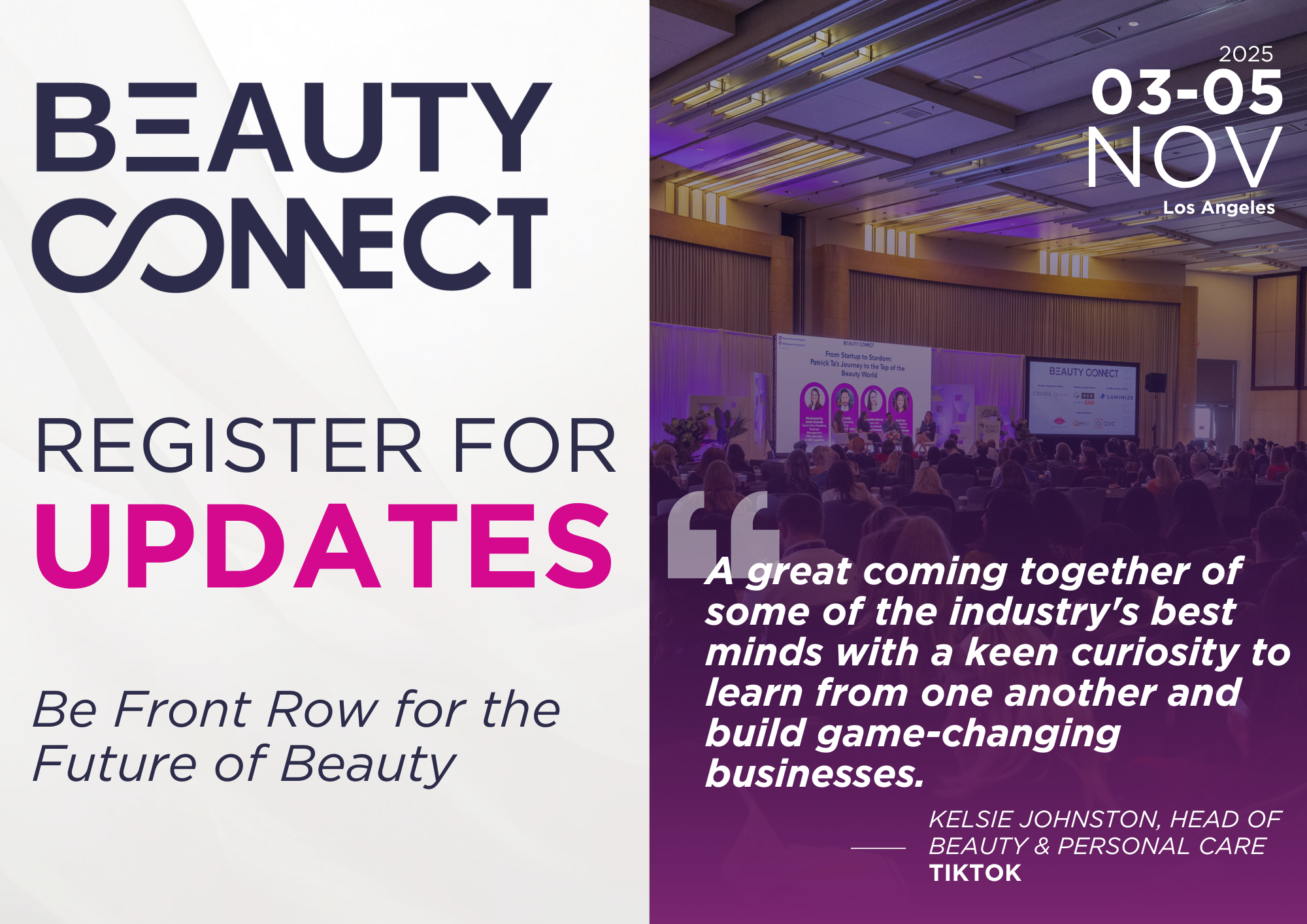 Step into the loop early and be the first to know what’s coming for Beauty Connect 2025. By registering your interest, you’ll get: